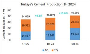 In the first 8 months of 2024, Spain’s cement production declined by -8.1% to 11.398 Mt, after 12.400 Mt in the same period last year and 12.389 Mt in the year before.