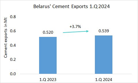 In the first quarter of 2024, Belarus cement exports increased +3.7% to 0.539 Mt, after 0.520 Mt in the same period last year. The export increase was mainly because of a larger demand by Russia.