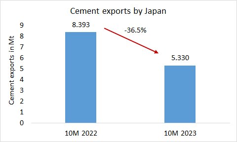 In Japan, the accumulated cement exports in the first 11 month 2023 declined by massive -34.4% to only 5.866 Mt Mt from 8.947 Mt in the same period last year. In November the exports only declined by -3.2% to 0.536…