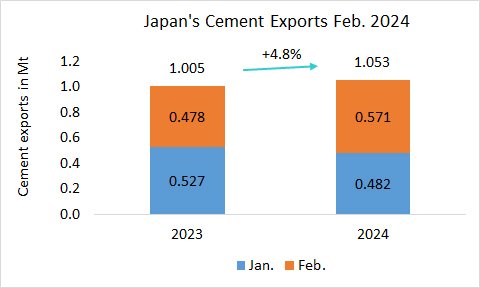 In the first two month of 2024, Japan’s cement exports significantly recovered by +4.8% to 1.053 Mt, after 1.005 Mt in the same period last year. February even saw a +19.5% YoY exports growth, while the January exports still declined…