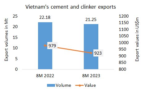 In the first 8 months of 2023, Vietnam’s cement and clinker exports have decreased by 4.2% in volume and 5.7% in value compared to the same period last year, reaching 21.25 Mt and US$ 923m, compared to the same period…
