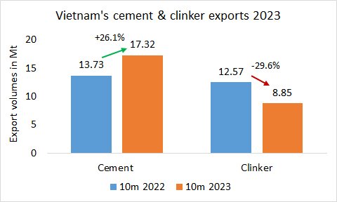 In Vietnam, the cement & clinker exports from January to October 2023 changed very significantly, when compared to 2022, although the total accumulated volume has not changed much and is still around 26.2 Mt. However, in 2023 in the first…