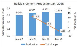 The annual cement production in Tunisia declined by -6.4% to 6.775 Mta, after 7.239 Mta in the last year and 7.520 Mta in 2022.