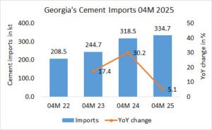 In the first quarter of 2025, Türkiye’s cement production declined by -8.3% to 18.331 Mt, after 19.987 Mt in the last year and 15.961 Mt in the year before.