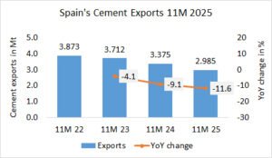 In the first 8 months in 2025, the US cement imports of Portland, blended and masonry cement declined by -6.8% to 12.459 Mt, after 13.366 Mt in the same period last year and 13.700 Mt in the year before.