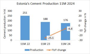 In the first 11 months in 2024, Uzbekistan’s cement production (of the large plants) increased by +33.3% to 14.743 Mt, after 11.059 Mt in the same period last year and 10.891 Mt in the year before.